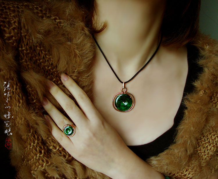 孟姐姐给好朋友定制的一套花青挂件和耳环,以及水岛寒月定制的戒指。