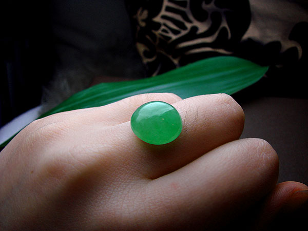 冰种满绿蛋面,其实绿色还不是非常满,但是种好,因此绿色好像一汪水一样,很美。想到小时候语文书里面朱自清先生的“绿“那一文。