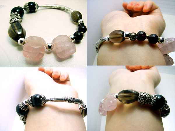 于是也很用心地做了魔羯的手链设计,MM看到问我,姐姐,为什么摩羯的手串没有白羊那么美丽呢?我笑着回答,那么你见过很张扬的摩羯座吗?MM恍然大悟,这倒是哦。摩羯的幸运水晶,黑玛瑙,石榴石,粉晶,茶晶,都是近乎黑白的颜色,就好像摩羯的人一样,无限的内秀,可以值得你一辈子去发掘。