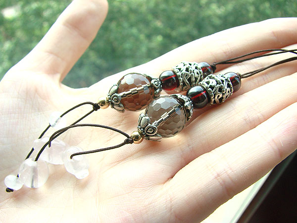 用摩羯的幸运宝石茶晶黑玛瑙和石榴石粉晶做的。设计作好象海上的灯塔的形状,祝福雪青的GG在茫茫大海执勤的时候,永远记得,并牵挂着那一盏守望着他归来的,并永远点亮着等候他的暖暖的灯塔,那是雪青MM的温暖的心。祝福这一对可爱而并且对爱执著的摩羯恋人,永远幸福。