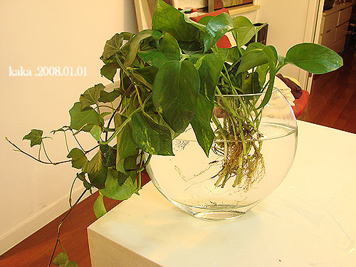 腊梅香气袭人,要比佳丽的清新剂化工香味美妙得多,富贵竹树枝没有根都可以活很久,还有一小盆宝石花,我曾经小时候养宝石花养到被太阳晒焦,这次千万不要,就在屋里好好藏着,而且,竟然是少见的开花了呢。还有水仙,买这一支的原因是它的海螺形壳子,不仅可爱,而且螺形从风水上说是敛财的,08好兆头,还有我喜欢的藤蔓植物,配了一个扁鱼形玻璃缸.突然更加曼妙了起来。