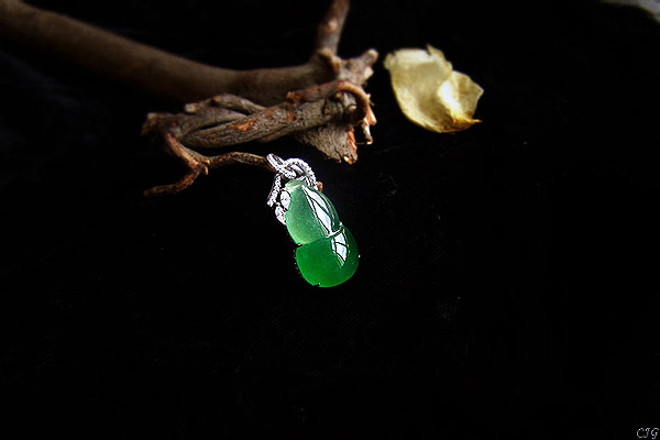 - 高冰种飘绿花树叶挂坠《蕴...