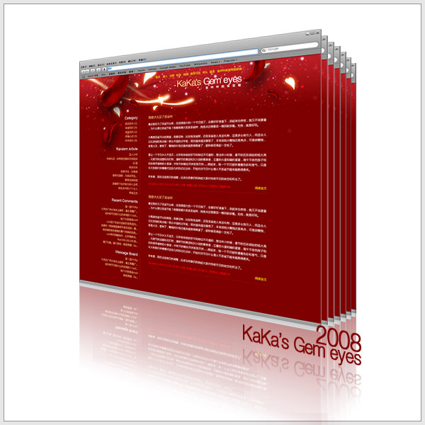 最近我跟光芒都要忙得飞起来,而小yo比我们闲一点(其实我看是因为他每天到凌晨3点睡觉的关系,经常我第二天能看到清晨2:00多他qq组里给我们的留言,关于他研究网站制作新的突破点。),所以他帮我的网站作了一个新的皮肤,说要在春节到来前给我的网站穿喜气洋洋的新衣服,我给盛大的圆子看,她赞,好高贵。我想是的,小yo的功力就在此,即便是要凸现喜庆的气氛,他绝对不会让喜庆沦于粗糙而乡土的喜庆,高贵的基调,将贯穿于他给我设计的所有界面的始终。