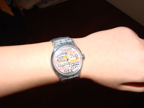 swatch的表,运动佩戴不错~金属色的皮带。