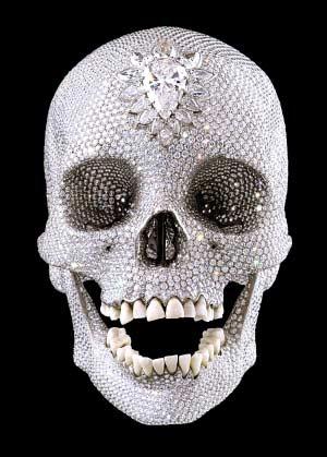 号称世界艺术圈第一红人的英国前卫艺术家达明安•赫斯特制作出这尊名为《献给上帝之爱》的“白金钻石骷髅”。“钻石