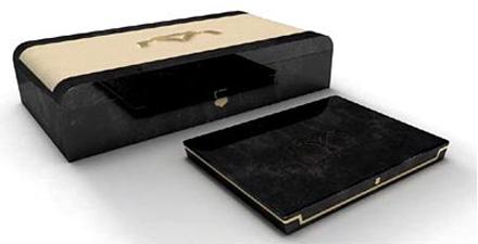 笔记本有三种外形材料——大理石、真皮和天然木材,再加上昂贵金属和多组菱形钻石或者宝石,其中开关上的钻石更采用了稀有颜色的钻石。目前Luvaglio笔记本的购买方式十分苛刻,必须与其公司联系,确认买主的身份和资金能力,才能够察看性能以及考虑购买。