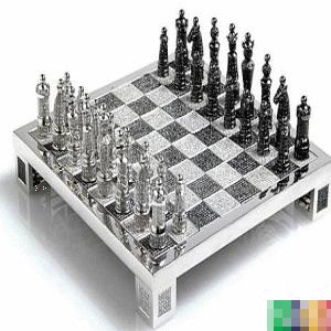 2005年,法国著名艺术家和珠宝设计师伯纳德•马昆设计出这款皇家钻石象棋,堪称世界上最贵的象棋。30多名能工巧匠在马昆的指导下,花了大约4500个小时一点一点制作出,一共用了9900颗黑色和白色钻石共186.09克拉,还有1168.75克的宝石,总共价值50万美元(约合人民币375万元)。