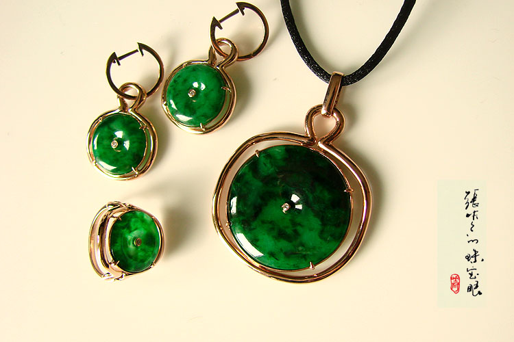 孟姐姐给好朋友定制的一套花青挂件和耳环,以及水岛寒月定制的戒指。
