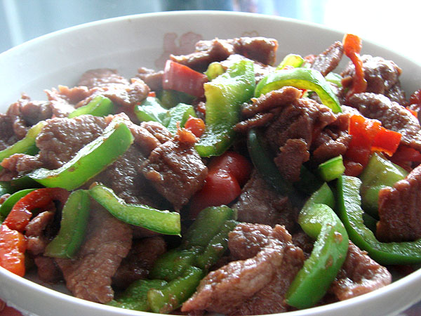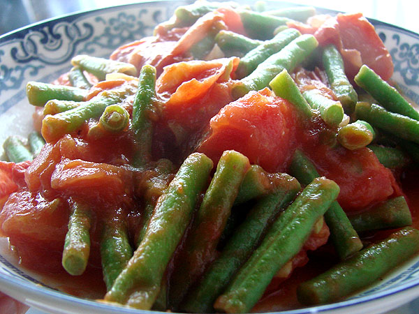 晚上我们吃了一个蚝油牛肉,一个番茄炒刀豆。没吃完的是我第二天的午饭刚好。