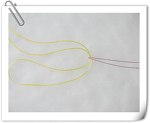 ⑥把线象系鞋带那样重复2遍(注意,要把线稍微拉紧些再打结,不然会很松)