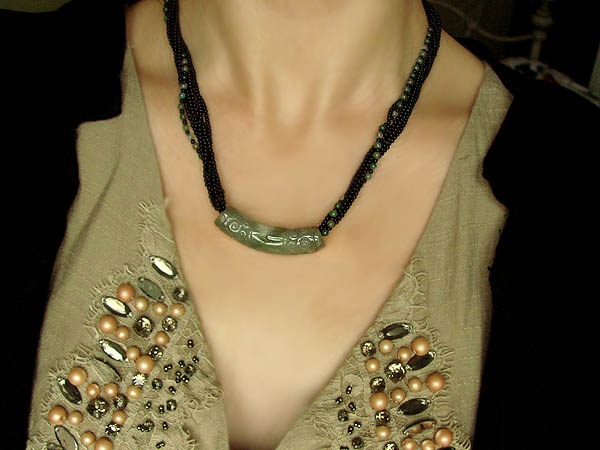 比如说这条,我就是用很好的绳子,配了一个看着实在不怎么样的翡翠;