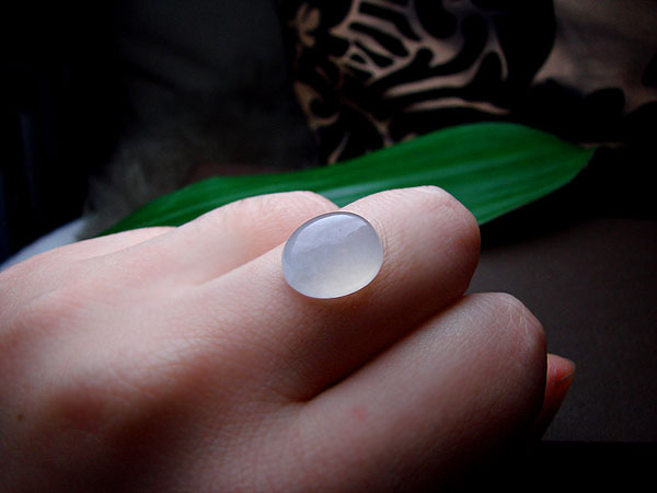 冰玻种蛋面,种质很好很透,据说判断蛋面种质的一个方法是把它扔到地上看能够弹多少下,弹得越多种质越好,但是你舍得扔下去弹嘛!^__^