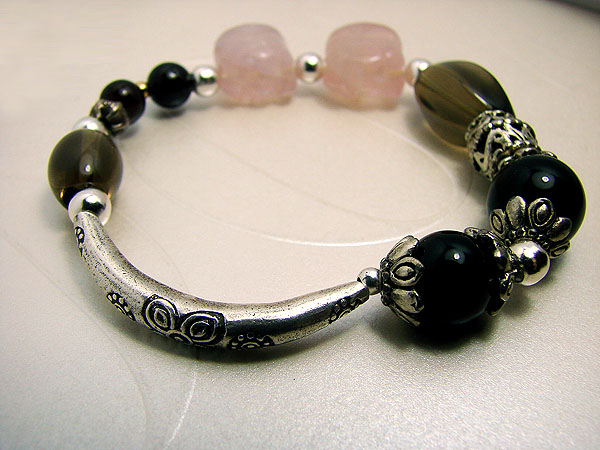 于是也很用心地做了魔羯的手链设计,MM看到问我,姐姐,为什么摩羯的手串没有白羊那么美丽呢?我笑着回答,那么你见过很张扬的摩羯座吗?MM恍然大悟,这倒是哦。摩羯的幸运水晶,黑玛瑙,石榴石,粉晶,茶晶,都是近乎黑白的颜色,就好像摩羯的人一样,无限的内秀,可以值得你一辈子去发掘。