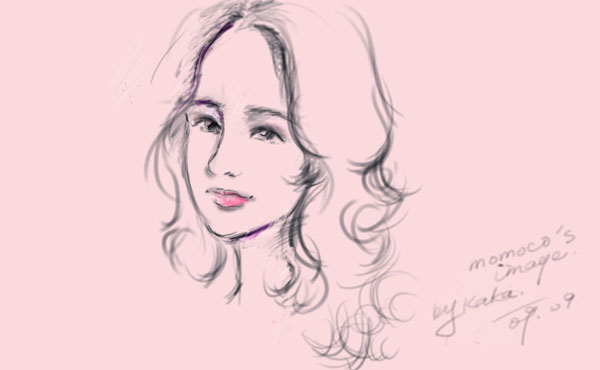 最后,上传一张我给momoco画的肖像,,,使用我新买的wacom手写笔。