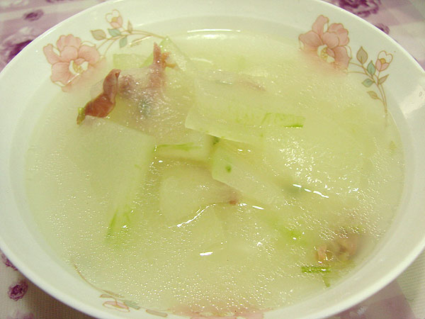 中午cici来我家玩,于是作了一顿减肥餐招待她,因为我们两个人都在吃减肥咖啡,所以胃口都超级小!我做了一碟炒对虾,一个火腿冬瓜汤——虾的脂肪含量为0,蛋白质却很高,因此减肥吃虾非常不错!冬瓜汤则不用说了,冬瓜的脂肪和糖分含量都是0,减肥首选蔬菜~~~俩个胃口小的人,几乎没吃饭,把菜干掉以后,都饱了。当然,之前还吃了一大碗樱桃,之后下午还吃了个苹果。
