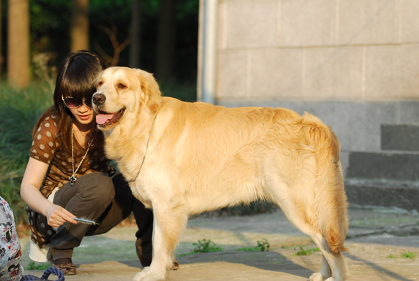 我又翻到她近期和她最宝贝的狗儿子,最最帅气可爱的金刚宝宝的合影!帅吧~~美女帅狗~~~
