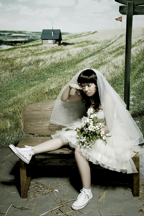 经过雕琢的爽爽,也很惊艳哪!不过明明单身,也去拍个婚纱,看来恨嫁得很。